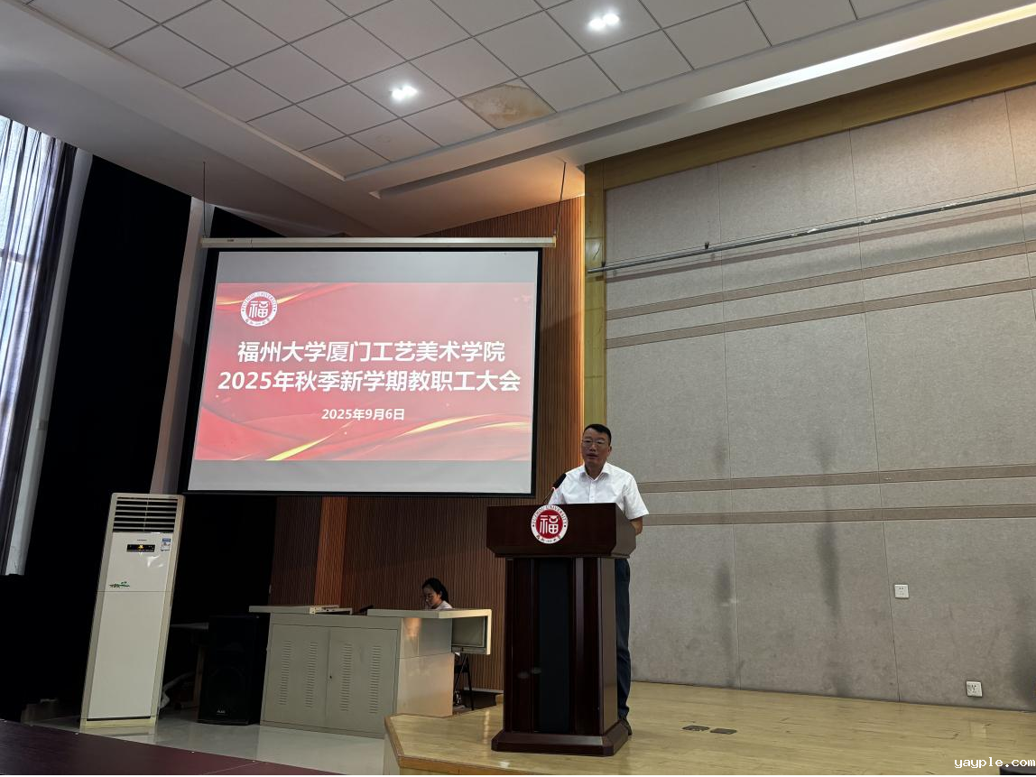 融媒中心讯/9月6日上午,厦门工艺美术学院在2号教学楼311学术报告厅举行2025年秋季新学期教职工大会,组织全体教职工进行理论学习,重点学习习近平总书记在纪念中国人民抗日战争暨世界反法西斯战争胜利80周年大会上的重要讲话精神。